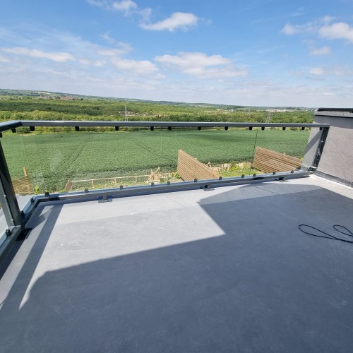 Tags: glass balcony balustrades, Chesterfield balustrades, waterproof roof balustrade installation, GRP roof balustrade, parapet wall glass balustrade, how to install balustrade on waterproof membrane, structural glass balustrades UK, bespoke metalwork Sheffield, UKCA certified balustrades