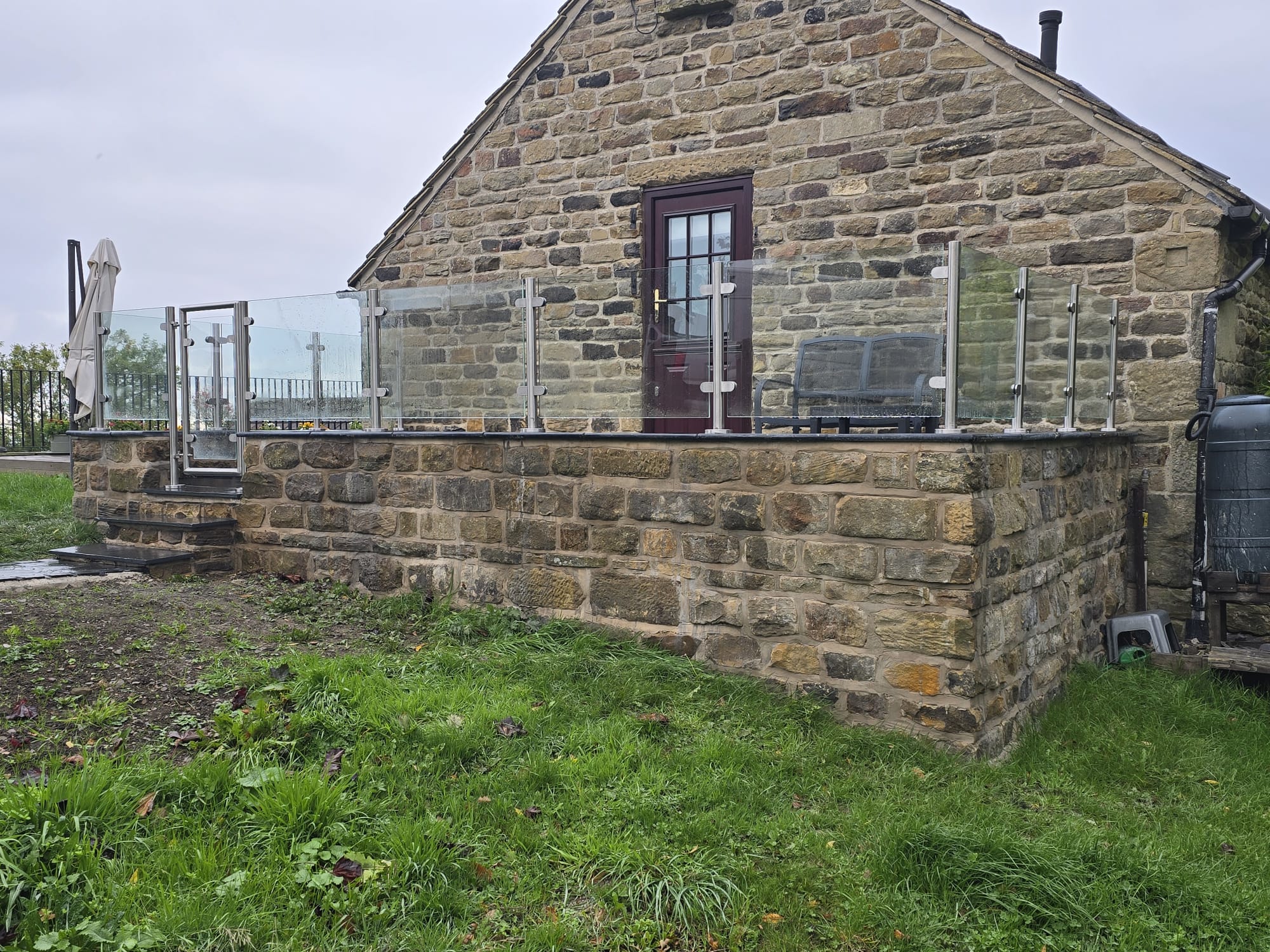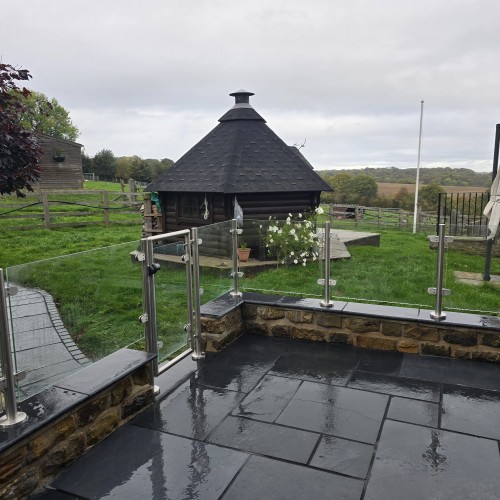 For this residential project in Wortley, the client required a comprehensive perimeter for a stone patio that was safe for both children and dogs. The critical requirement was a matching glass gate that felt as substantial and secure as the main balustrade run, avoiding the "wobble" common in standard domestic gate kits.