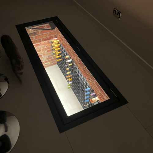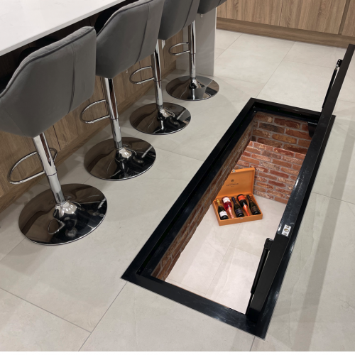 Tags: ukca certified, wine cellar door, glass floor hatch, kitchen feature, glass trap door, electric cellar door, basement access, cellar glass hatch