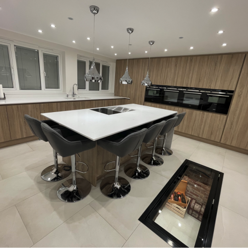 Invisible Non-Slip Treatment: Safety is paramount in a kitchen environment. Our walk-on glass features an advanced, invisible non-slip treatment. This maintains the crystal-clear view of the cellar below while providing the necessary grip to prevent accidents, even in a high-traffic area.