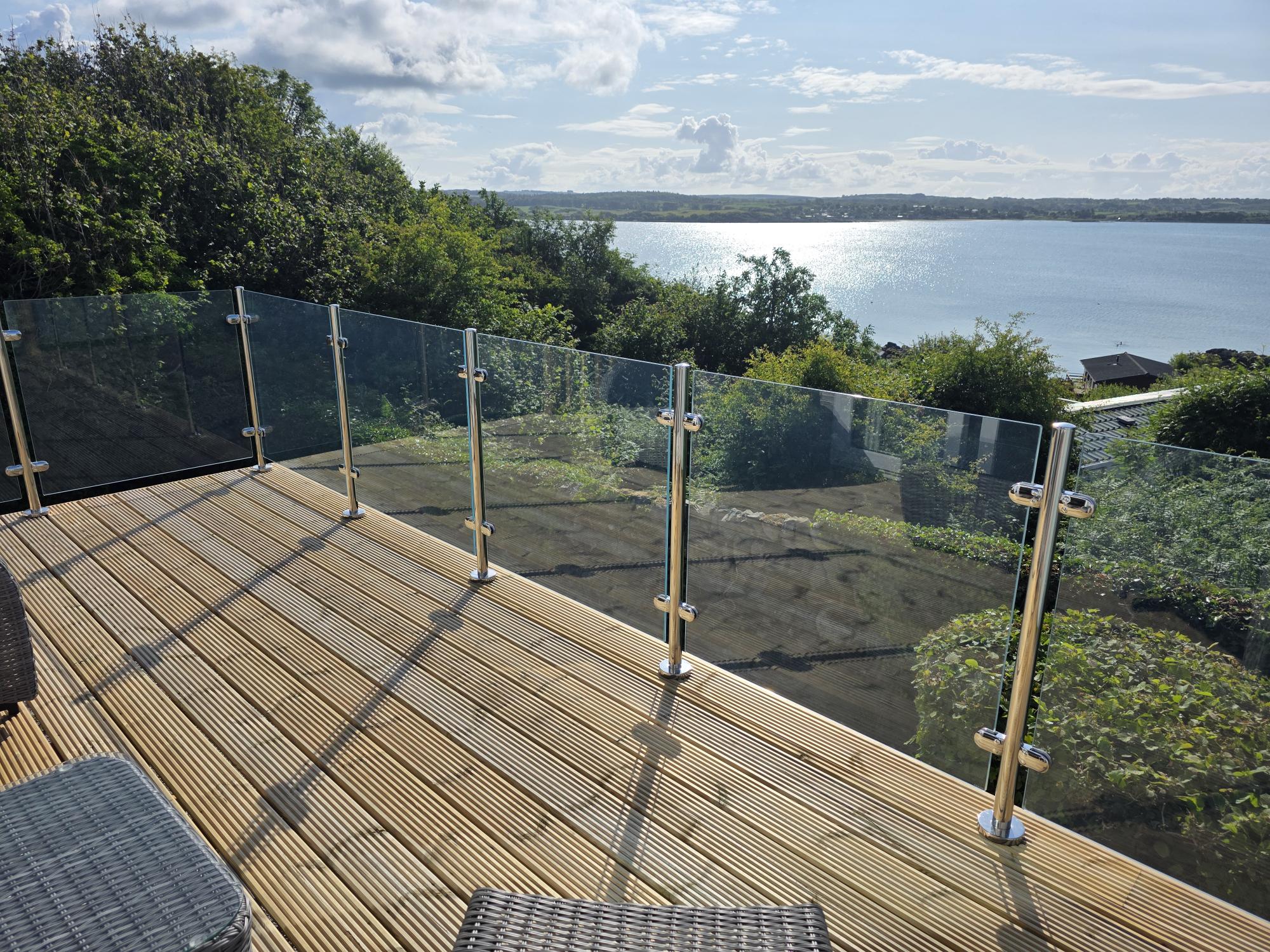 The Laminated Safety Advantage: While many nearby lodges utilize 10mm toughened glass, this fails to meet BS 6180 requirements for barriers without a continuous handrail. If single-layer toughened glass breaks, the barrier vanishes. Our toughened and laminated glass utilizes a safety interlayer that holds the glass in place even if shattered, maintaining a vital life-safety barrier—essential for families with children and pets.