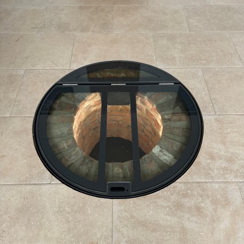 High-Clarity Visibility: The clear glass panel acts as a window into the past, showcasing the original brickwork of the well while allowing ambient light to reach the subterranean space.
