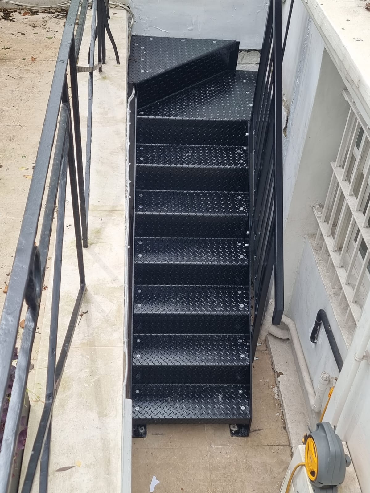 Tags: steel staircase, metal balustrade, external stair, london, DIY stairs, UKCA, basement access