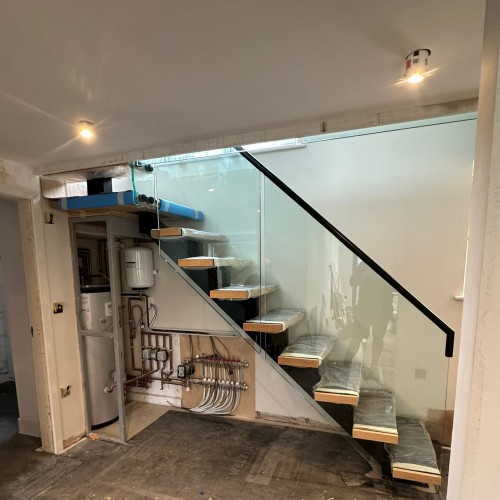 Installation Pictures : Modern Steel Spine Oak & Glass Staircase